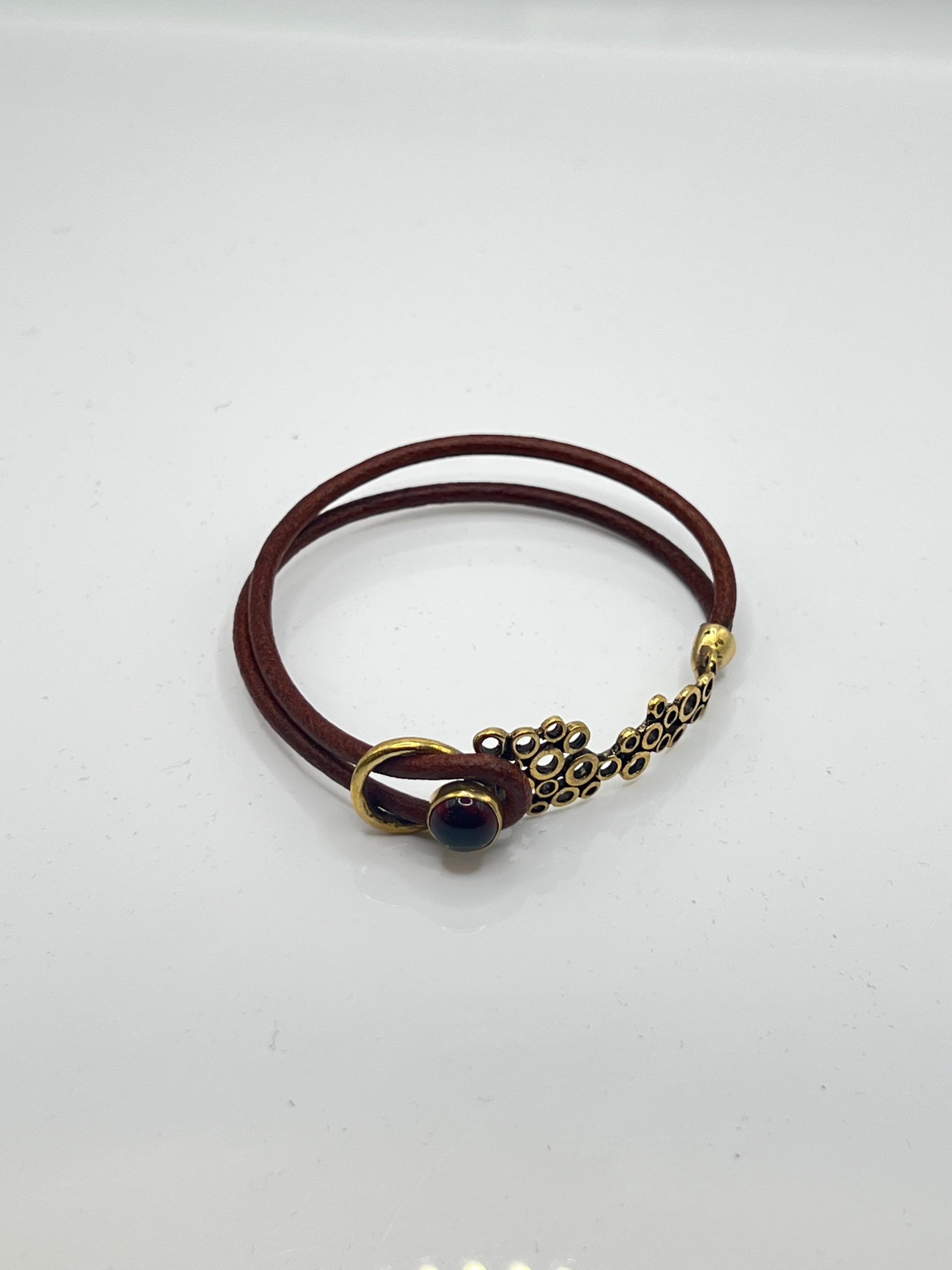 Crafted in Armenia, this bracelet combines warm brown leather with intricate brass detailing — a modern interpretation of traditional craftsmanship and design.