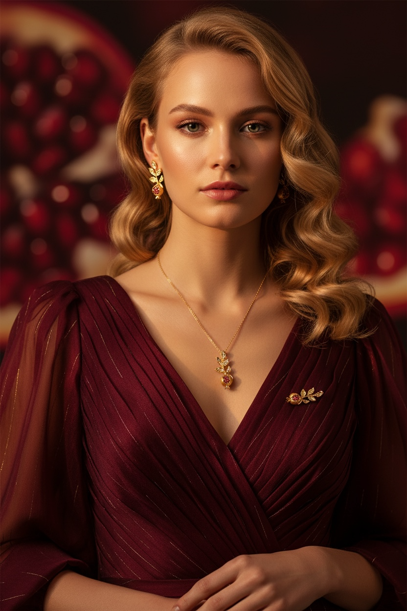Introducing Pamela Twig's Pomegranate collection earrings, featuring a half open pomegranate design with intricate details of seeds and leaves. Crafted in gold-plated metal and adorned with sparkling zircon gemstones, these 2" earrings are a stunning addition to any jewelry collection.