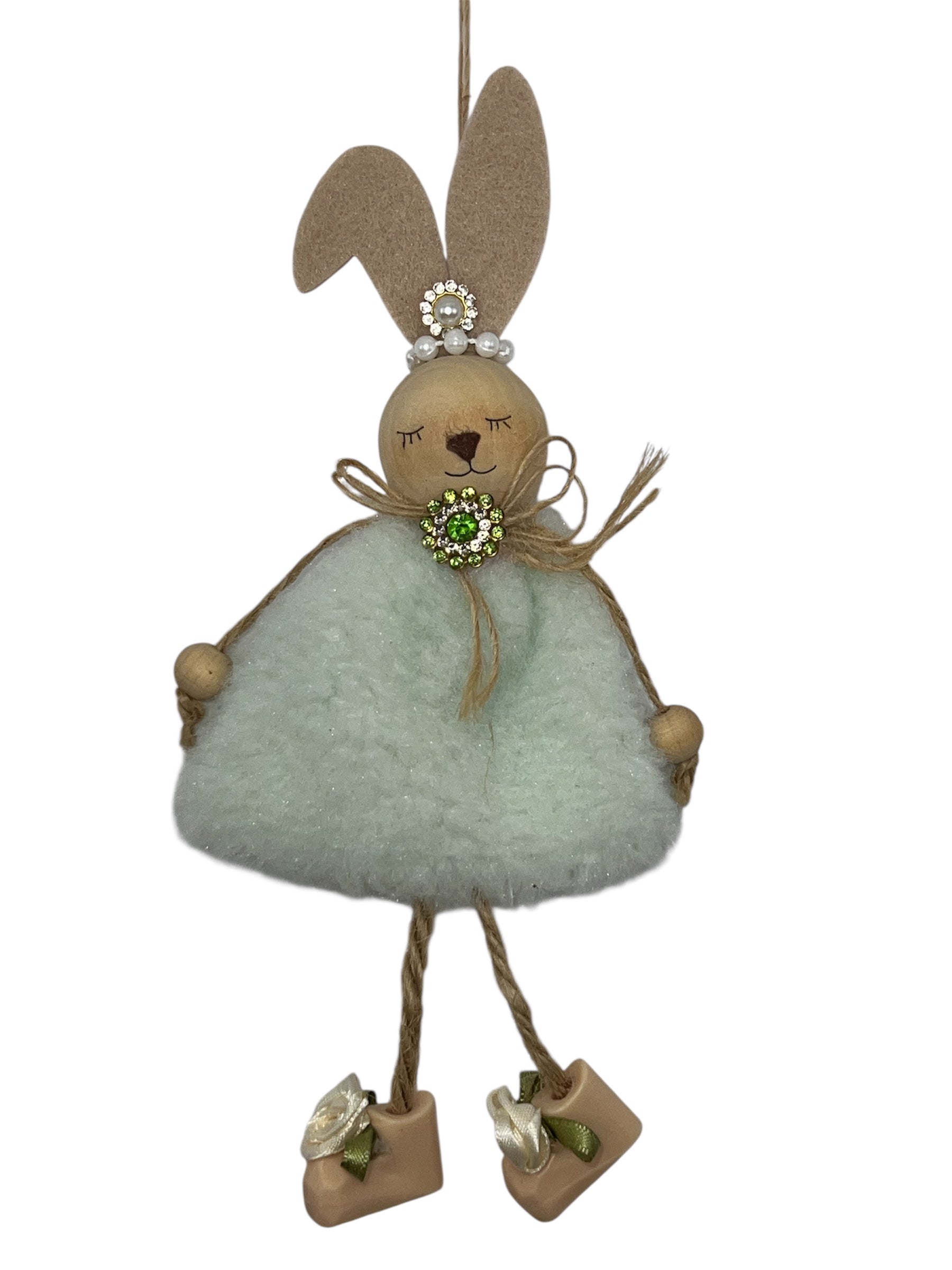 Green Bunny: Wearing a pale green dress with floral shoes and a crystal crown for a touch of sparkle.