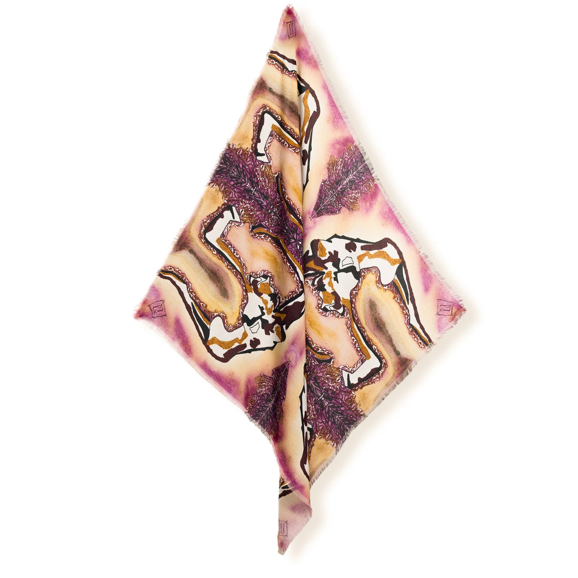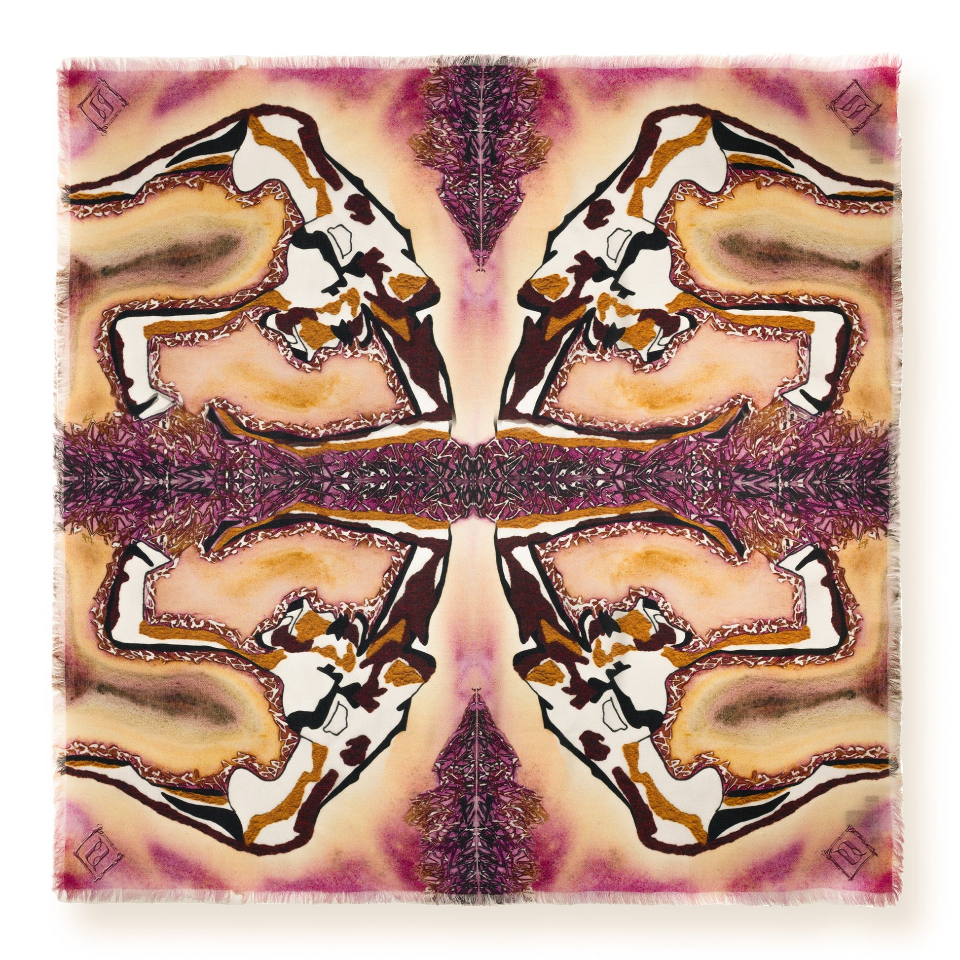 Sway Modal Scarf printed With Anet Abnous's Original Painting "Sway" which was exhibited in NYC and North Korea. It has a imprint of Figurative Abstract painting in beautiful hues of Purple and Yellow. It is part of our Sensuous Desire collection.